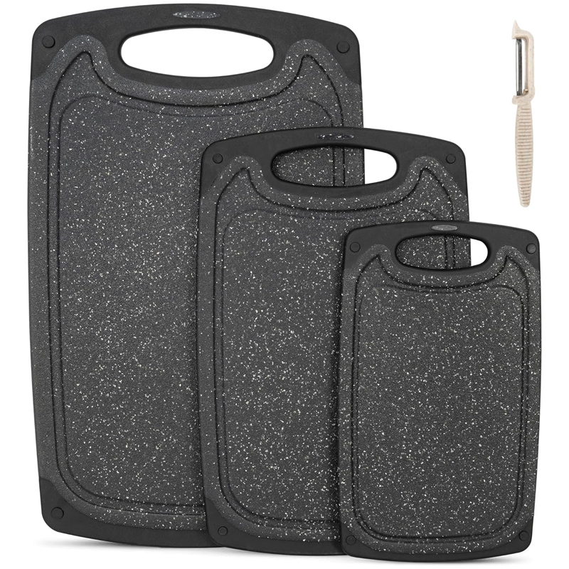 - With a sleek black design, these cutting boards are ideal for everyday use in the kitchen, providing a reliable surface for food preparation.